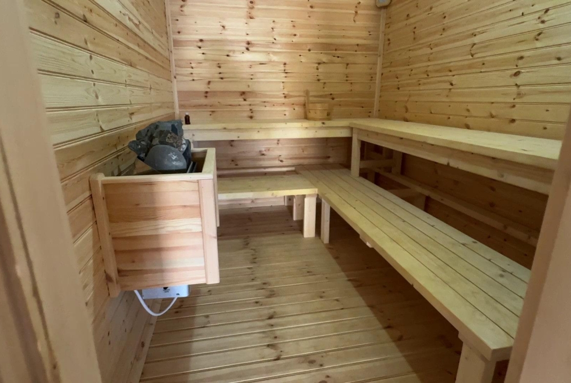 - на первом этаже спортзал 200 м2, комната отдыха, сауна, душ и бар
